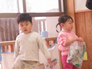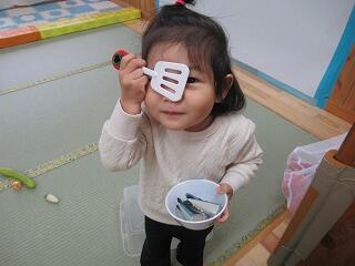 今日は、お部屋でおままごとをして楽しみました。それぞれ好きな食べ物の玩具は決まっているのか、魚ばかりを料理したり、ケーキを四つくっつけて、料理したり、キュウリを大事そうに持ちまわったり、スイカを四つくっつけて丸いスイカを作ったり、それぞれがお料理を楽しみました。