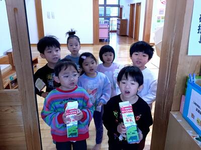 さくら組さんに当番の事を教えていただき、一緒に当番活動に挑戦しました。頑張るぞー‼