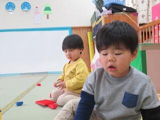 今日はホールで発表会練習をしました。歌やセリフを覚えて大きな声が出始めました。本番まであと一週間・・・のびのび表現できるよう練習を頑張りたいと思います。練習の後は、おままごとをして楽しみました。発表会練習でお腹がすいたのか、お料理したり、作ったものを同年代の子と一緒に食べる真似をして楽しみました。