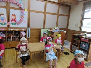 今日は、こいのぼりの目玉を作りました。画用紙に丸を描いて切っていきます。どんな大きさの目にするか、考えたり、友達と相談したりしながら作ることを喜んでいました。
