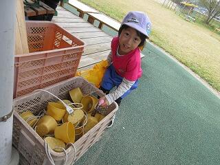 今日は、メリサさんと交流しました。4月と言えば、イースター♪ということで、卵探しをしました。交流前からメリサさんが園庭のいろいろな場所に隠す姿を見ていた、さくらさん。「分かった‼あの木の所にあるんだよ‼」「あっちにも隠しとったけ、分かるし~」とつぶやいていましたよ。外に出ると、袋を片手にゲームがスタート‼皆、勢いよく走って行き、次々と卵をGET‼全部で50個の卵なので、皆で集めた卵の数を数えて1個足りない・・・となると皆で探し直し(笑)「ん~ここにないな~」「ここにもないな~どこにあるんだろう?」とタライやスコップなども動かしながらやっと全部見つけることが出来ました。フランスでは、本物のチョコを食べることを聞くと、「いいな~本物のチョコが良かったな♡」と羨ましそうに話しを聞いていました。全部の卵を見つけることができて良かったね~