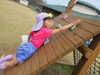 今日はさくらぐみ・ちゅうりっぷぐみ合同で野球場までお散歩に出かけました。自分たちが車道側になるよう歩きながら手を繋ぎ直し上手にリードしてくれるさくらさん。さすがですね。野球場では坂で滑り台を一緒にしたり、ダンゴムシを一緒に見つけて覗きこんだり、かっこよく木登りをするさくらさんを真似して木登りに挑戦したり、二回目の合同散歩でもっともっと仲良しになったさくらさんとちゅうりっぷさんでした。最後にみんなで仲良く並んで坂滑り!!みんなの笑い声が響いていましたよ。楽しかったね、また一緒にお散歩しようね。