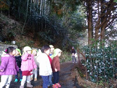 太陽ピカ―🌟で雲もほとんどない良い天気でしたが、道を進むと山や木の陰で真っ暗・・なんだかトトロの世界に迷い込んだようでした。子どもの数倍はある植物を見つけたり、川の音だけが響く場所があったり、子ども達も不思議そうな表情で散策をしていましたよ!