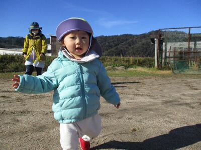 今日は、野球場まで散歩へ行きました。「散歩行く人」と聞くと「はーーーい!」と元気よくお返事してくれたり、出発するときに「レッツゴー!」と言うと「ゴー!」と手をあげたりする子ども達。野球場に着くと嬉しそうに歩き回ったり、大きな葉っぱを見つけたり、木の棒や指で地面にお絵描きしたりしていました!