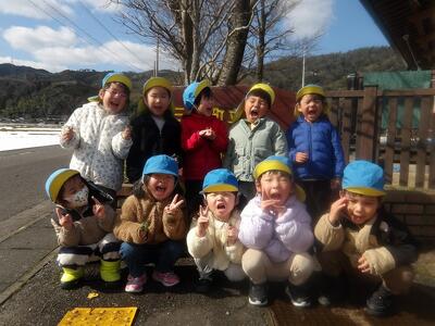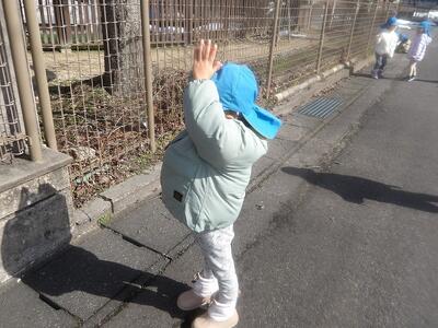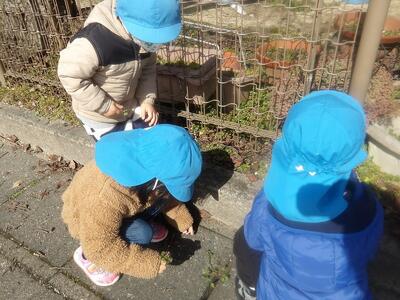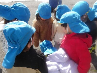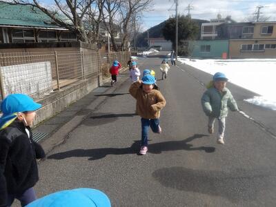 朝は曇り空でしたがおひな様を作っているあいだにお日様がでてきていいお天気に☀短い時間でしたが保育園前の道路で外遊びをしました。何をするかな?と子ども達の様子を見ていると…氷鬼しよう!の声にみんなが輪になって集まり、鬼決めが始まりました。「鬼決め、鬼決め、誰が鬼かな」と歌いながら楽しそう。大きいお兄さんお姉さんと一緒に遊んだ時に覚えたようです。氷鬼のようなルールのある遊びも楽しめるようになってきたちゅうりっぷさんです。少ししか遊べなくて「もっと遊びたーい!!」と叫んでいました。またいっぱい遊ぼうね。