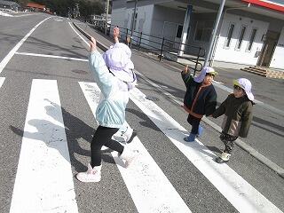 今日は、久しぶりにお散歩に出掛けました。散歩途中には、いくつか横断歩道があります。いつもは、保育者が「右見て~左見て~。渡っていいよ」などと子ども達と一緒に確認しながら渡っていますが、今日は、小学生になる練習で子ども達が左右を確認してから渡る練習をしました。保育者は、隣から見守っていましたが、友達と一緒に歩行者用の信号を見たり、左右を確認したりしてから渡ることが出来、交通ルールばっちりなさくらさんでした。小学生になっても大丈夫そうですね。