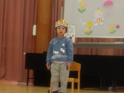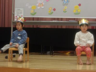 今日は3月生まれのお友達2名のお誕生会でした。ステージの上で少しドキドキしている様子でしたが、お名前や大きくなったらなりたいもの・好きな食べ物を上手にお話してくれました。クラスのお友達からプレゼントをもらうとニッコリ笑顔も見せてくれましたよ。そして、今月のおたのしみは『キッチンオーケストラ』♪いつもはお料理に使うお鍋やフライパン、お玉にしゃもじが楽器に変身。キューピー3分クッキングの曲合わせて色々な音が聞こえましたよ。最後はみんな大好きアンパンマンの歌で一緒に歌ったり手拍子をしたりして楽しいおたのしみとなりました。