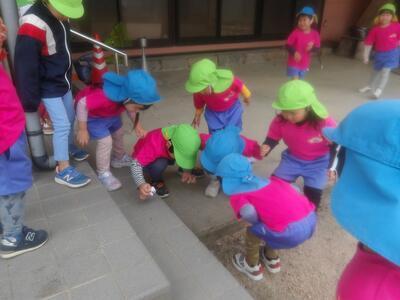 仲良く手をつないで歩きながら、自然物探しをしたり、お友達の家探しをしたり、広場で遊んだり、楽しい散歩の時間をすごしましたよ♪